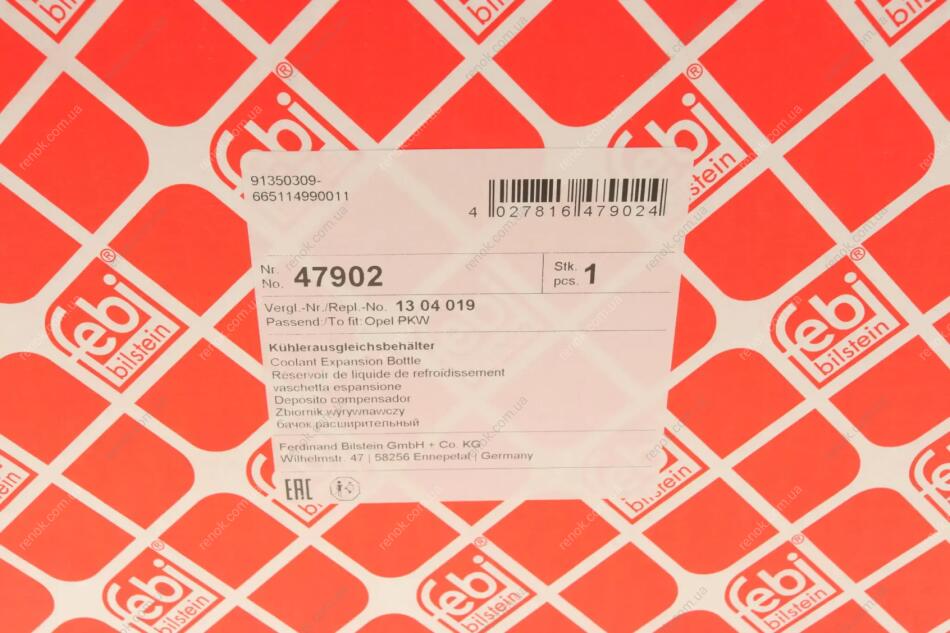 Бачок розширювальний Opel Astra H/J 04-15/Cascada 13- FEBI BILSTEIN 47902 (01304005, 01304014, 01304019)