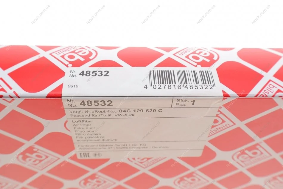 Фільтр повітряний VW Polo/Skoda Fabia 1.0 i/TSI 14-/Seat Ibiza 1.0 i/TSI 15- FEBI BILSTEIN 48532 (4C129620C, 04C129620C)
