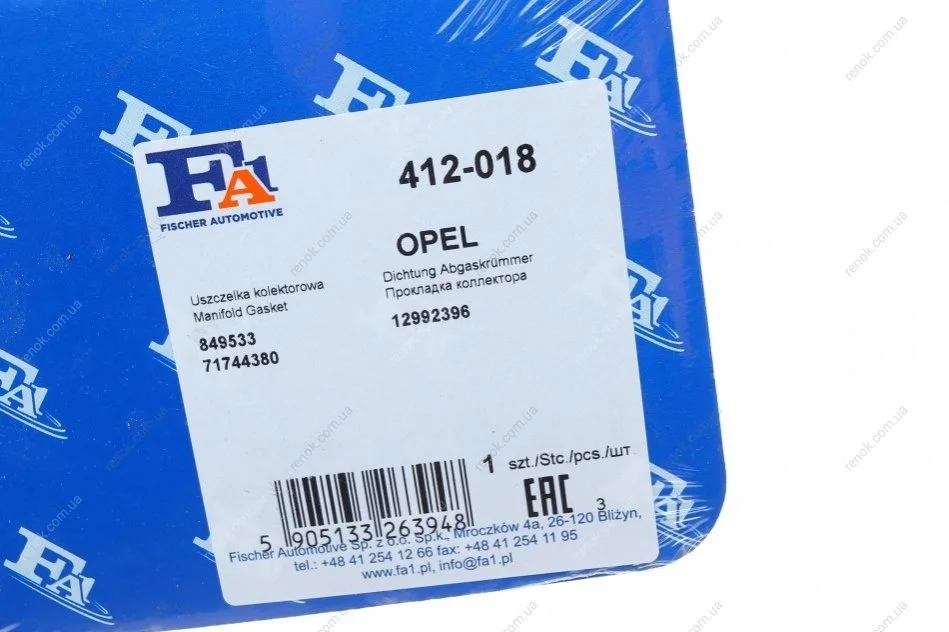 Прокладка колектора випускного Opel Astra J/H/Vectra C Fischer Automotive One (FA1) 412-018 (12992396, 71744380, 849533)