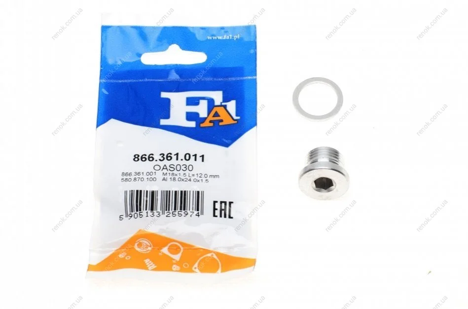 Болт зливу оливи + шайба Porsche Cayenne 02- (M18x1.5) Fischer Automotive One (FA1) 866.361.011 (90021900930, 90021902031)