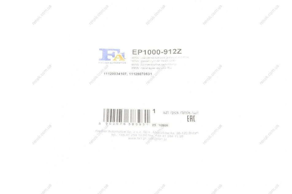 Прокладка кришки клапанів BMW 3 (E36)/5 (E34) 2.0i-2.8ii 94-98 M50/M52 Fischer Automotive One (FA1) EP1000-912Z