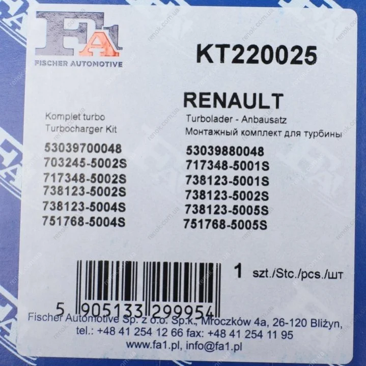 Комплект прокладок турбіни Renault Trafic/Master 1.9dCi Fischer Automotive One (FA1) KT220025