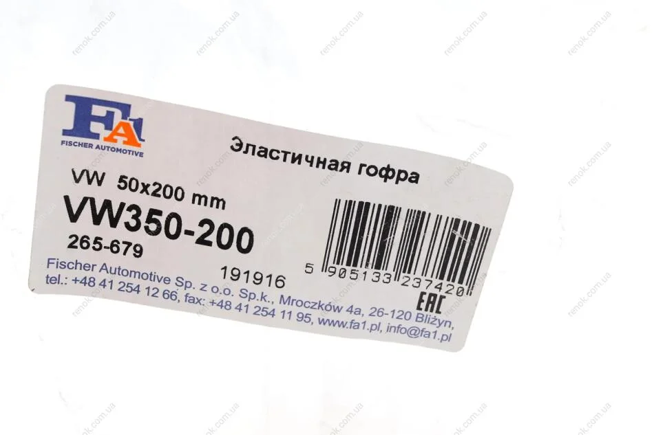 Гофра глушника VW Caddy III 1.9 TDI 04-10 (50x200) Fischer Automotive One (FA1) VW350-200