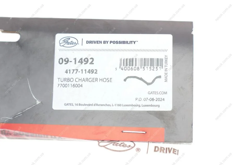 Патрубок інтеркулера Gates 09-1492 (7700116004, 8200131120, 8200142349)