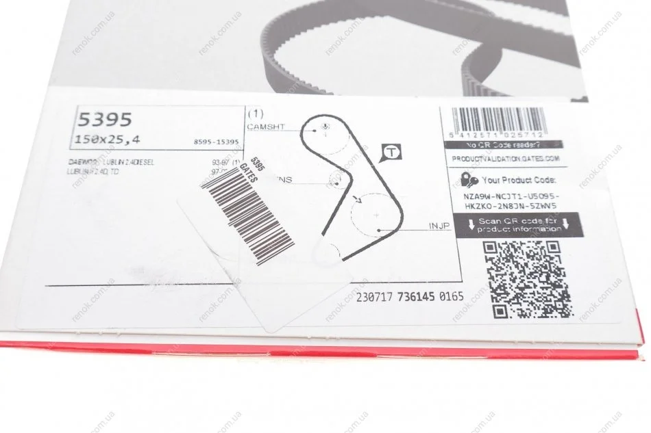 Пас ГРМ з довжиною кола понад 60 см, але не більш як 150см Gates 5395 (19106911, 782013756)
