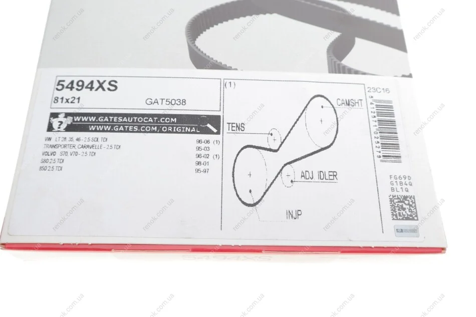 Ремінь ПНВТ VW LT/VW T4 2.5TDI/SDI 96- Gates 5494XS (074130113E, 074130113J, 9202398)