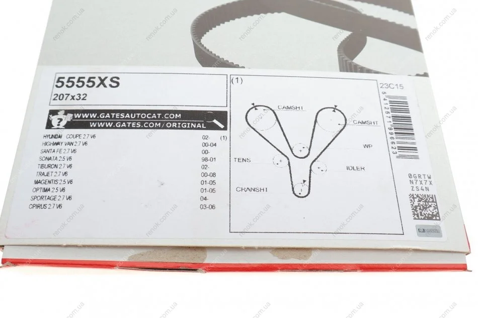 Ремінь ГРМ Kia Sportage/Hyundai Santa Fe/Sonata/Tucson 2.7 00- (32x207z) Gates 5555 XS (3431237500, 2431237100, 2431237400)