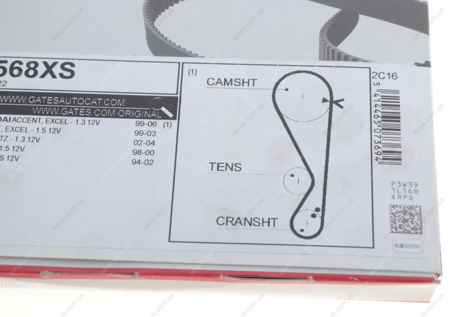 Ремінь ГРМ Hyundai Accent/ Getz 1.3-1.5 94-05 Gates 5568XS (2431222613, 2431222611, 2431222612)
