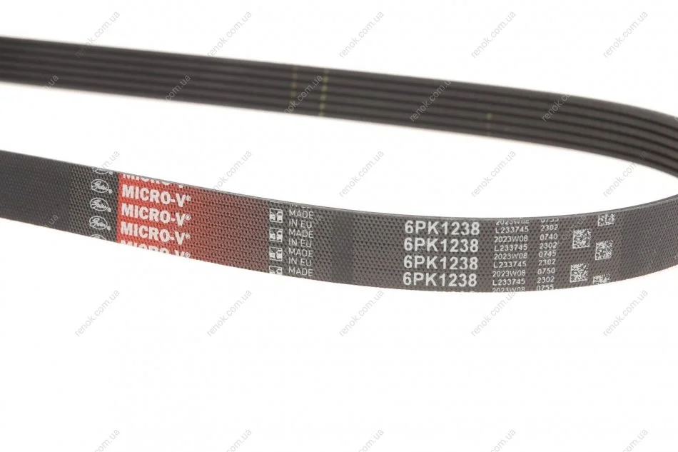 Ремінь генератора Renault Laguna 2.0 95-01/Toyota Auris/Corolla 1.4D 06-14/VW Golf V 3.2 05-08 Gates 6PK1238 (7700260889, 7439146899, 1340A154)