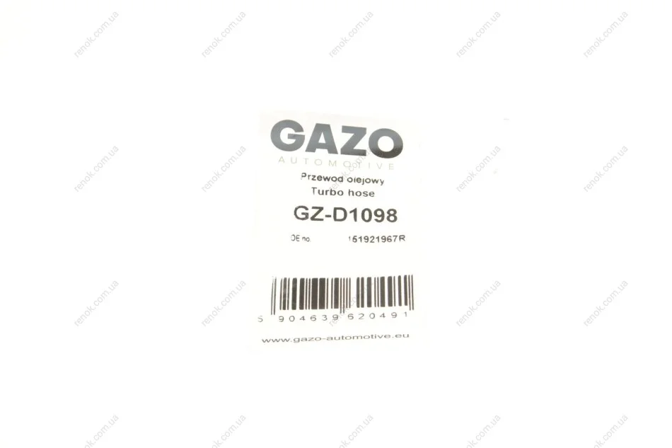 Трубка подачі оливи до турбіни Renault Kagoo/Master III/Dacia Dokker 1.2TCe/2.3 dCi 12- GAZO GZ-D1098 (1519200Q1F, 151921967R)