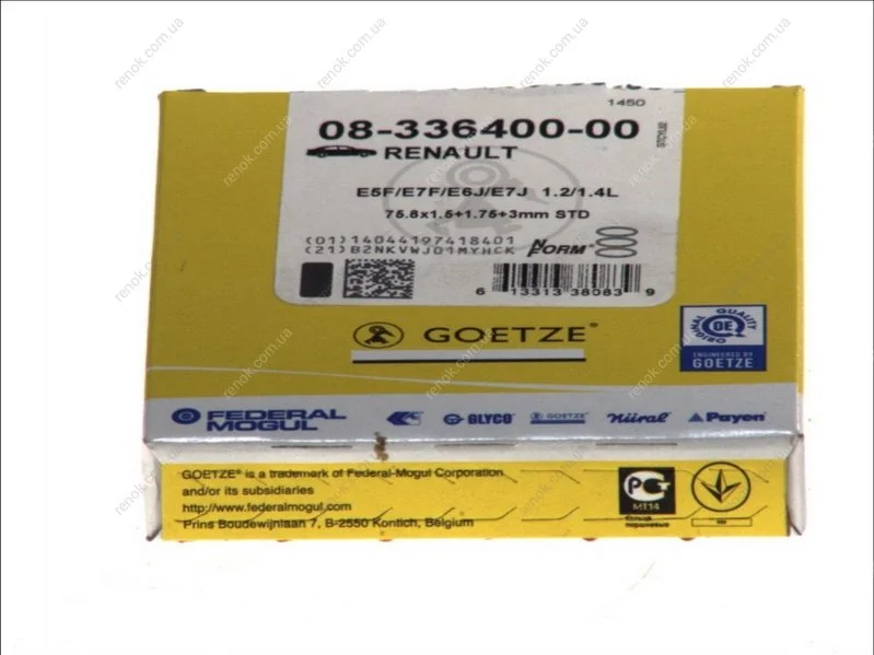 Комплект кілець поршневих з 3 шт. GOETZE 08-336400-00 (7711130009, 6001543008)