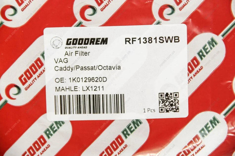 Фільтр повітряний Caddy III/Golf V/Passat B6/Octavia 1.9/2.0TDI (з сіткою) GOODREM RF1381SWB