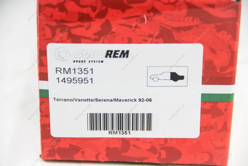 Колодки гальмівні пер. Terrano/Vanette/Serena/Maverick 92-06 GOODREM RM1351 (1954460, 1957042, 410602X825)