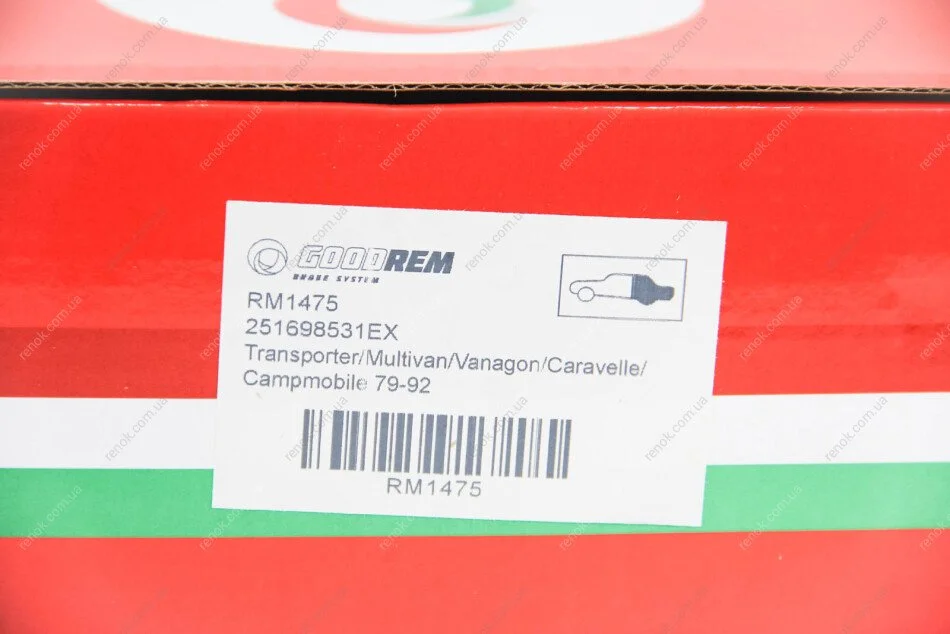 Колодки гальмівні задн. Transporter/Multivan/Vanagon/Caravelle/Campmobile 79-92 GOODREM RM1475