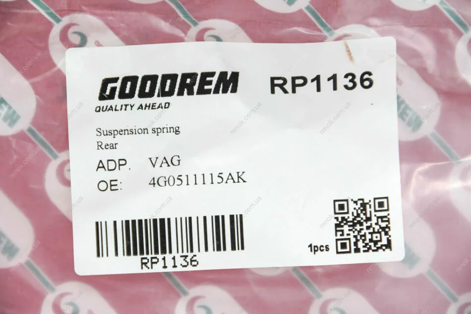 Пружина (задня) Audi A4 1.8-2.0TFSI/2.0-3.0TDI/3.2FSI 07-15 (унив.)/A6 2.0TDI 13-18 (седан/Ultra) GOODREM RP1136