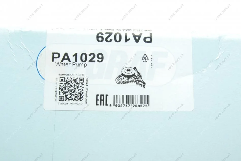 Помпа води MB E-class (W211/W212)/S-class (W221)/GL-class (X164) 5.5 05- (R/B)(5 лоп)(6 кан) GRAF PA1029 (2732000201, A2732000201, A273200020180)