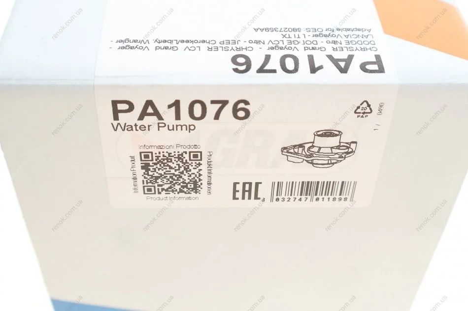 Помпа води Jeep Cherokee/Wrangler 2.8 CRD 07-/Chrysler Voyager 2.8 CRD 07- (R/B) (7 лоп.) GRAF PA1076 (68027359AA)