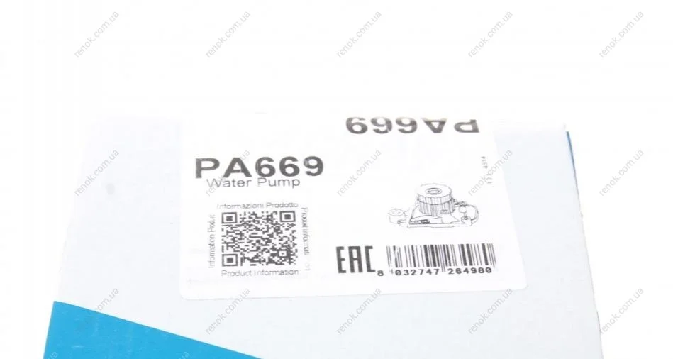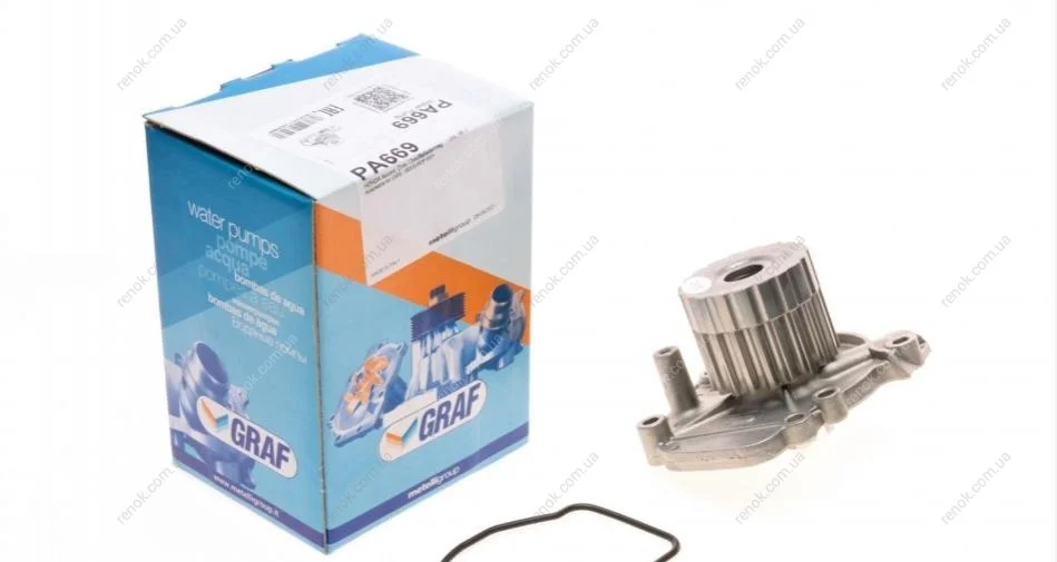 Помпа води Honda Accord VI 1.6/i/LS/Civic V/VI 1.4-1.6 16V 95-02/HR-V 1.6 16V 99- (19z)(B/B)(7лоп) GRAF PA669 (19200P2A004, 19200P2AA01, 19200P2AA02)
