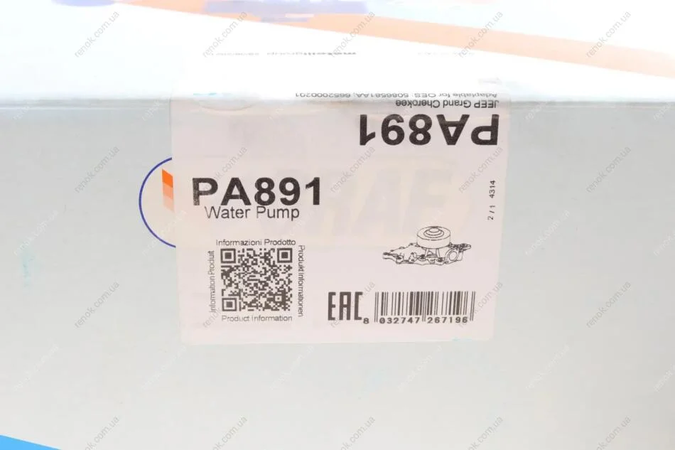 Помпа воды GRAF PA891 (5086581AA, 6652000201)