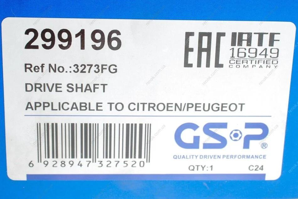 Піввісь Citroen Berlingo/Peugeot Partner 1.6/2.0 HDi 98-11 (R) (25x24x869x48T) (+ABS) GSP 299196 (3273FG, 3273FH, 3273JY)