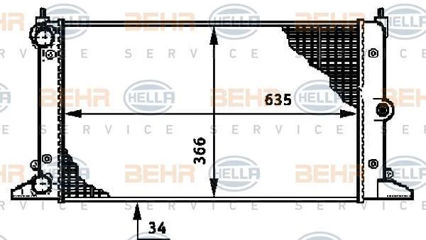 Розміри радіатора: 635 X 377 X 34