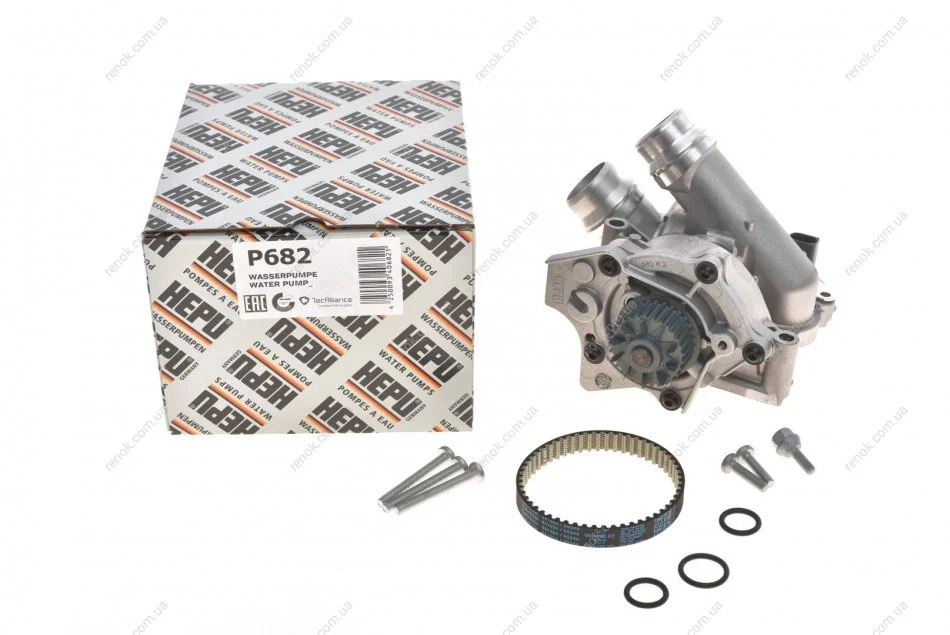 Насос охолоджуючої рідини, з ущільненням AUDI A3, A4 ALLROAD B8, A4 B8, A5, A6 C7, A8 D4, Q3, Q5, TT SEAT ALHAMBRA, ALTEA, ALTEA XL, EXEO, EXEO ST, LEON, TOLEDO III 1.8-2.0H 09.04-07.19 HEPU P682 (06H121005S, 06H121008F, 06H121026AG)