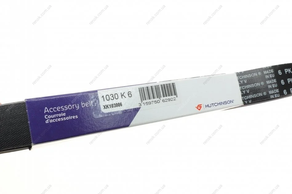 Ремінь генератора Nissan Almera 2.0 00-03/ Primera 2.0 16V 96-01 HUTCHINSON 1030K6 (5750PW, 5750RP, 5750X1)