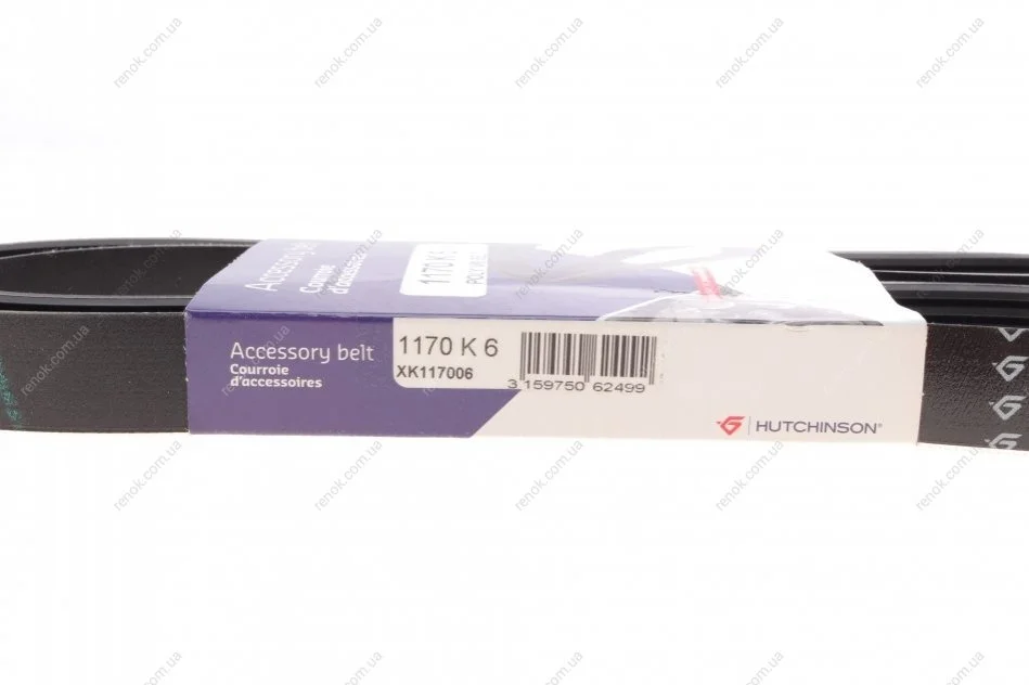 Ремінь генератора (поліклиновий) 1170 K 6 HUTCHINSON 1170K6 (7700743549, 7700729751, 5750TN)