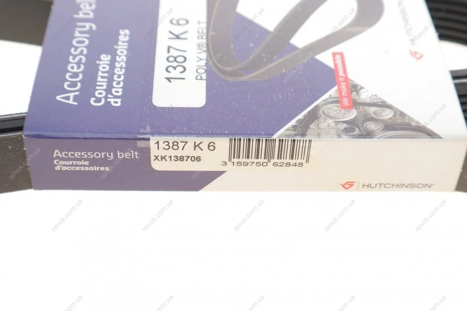 Ремінь генератора Citroen Berlingo/Fiat Scudo/Peugeot Partner 1.9D 98- (6PK1387) HUTCHINSON 1387K6 (5750GJ, 5750S6, 5750X6)