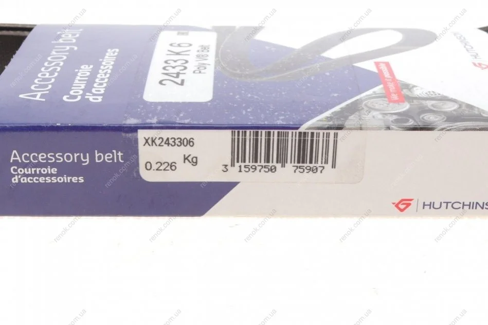 Ремінь генератора Jeep Cherokee 2.8 CRD 08- (6PK2433) HUTCHINSON 2433 K 6 (55563222, 059903137BA)