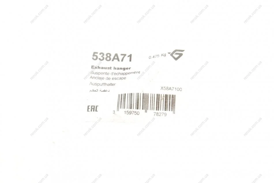 Кронштейн кріплення глушника Renault Master III 2.3dCi 10- HUTCHINSON 538A71 (206510016R)