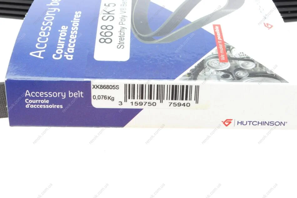 Ремінь генератора (поліклиновий) HUTCHINSON 868 SK 5 (1354250, 1354255, 1708273)