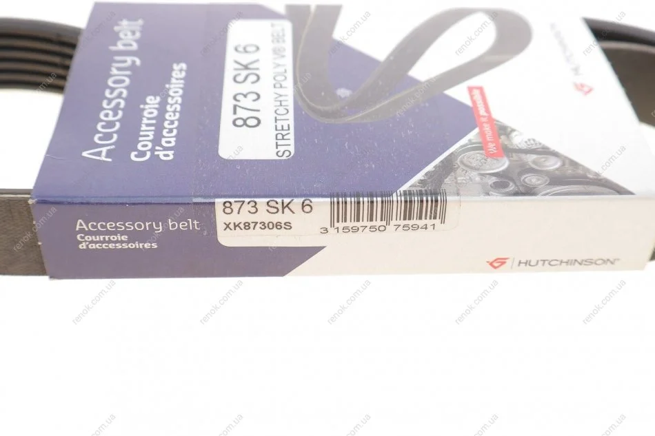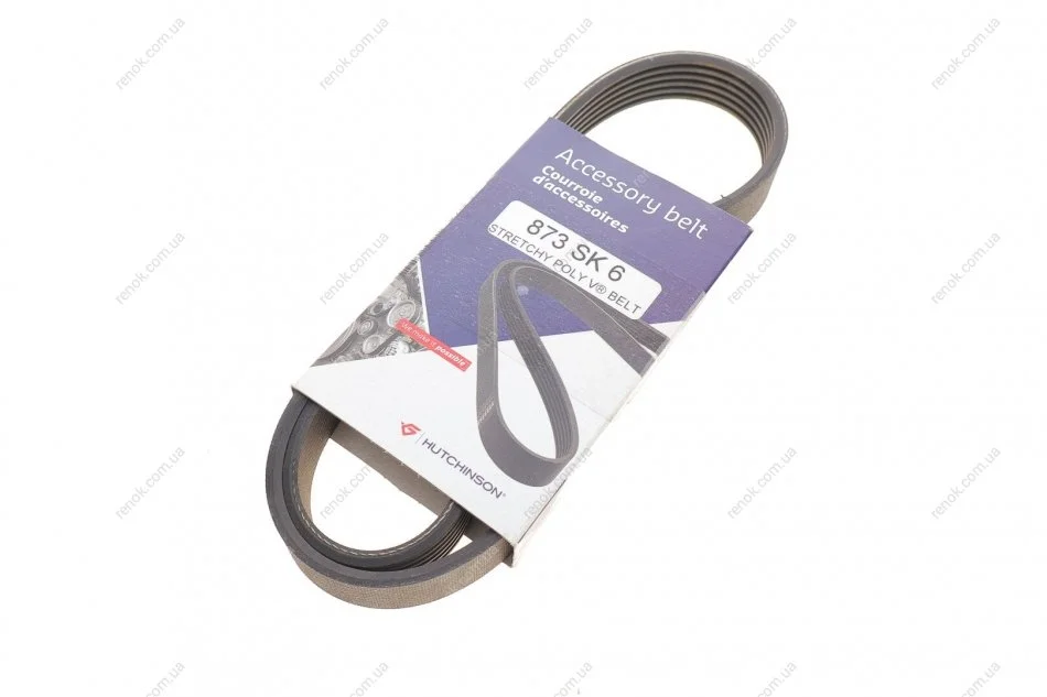 Ремінь генератора Citroen Jumper/Peugeot Boxer 2.0/2.2HDi 04- (-AC)/Opel Movano 2.5D (6PK873) HUTCHINSON 873SK6 (1465191, 9658144580, 5750XP)