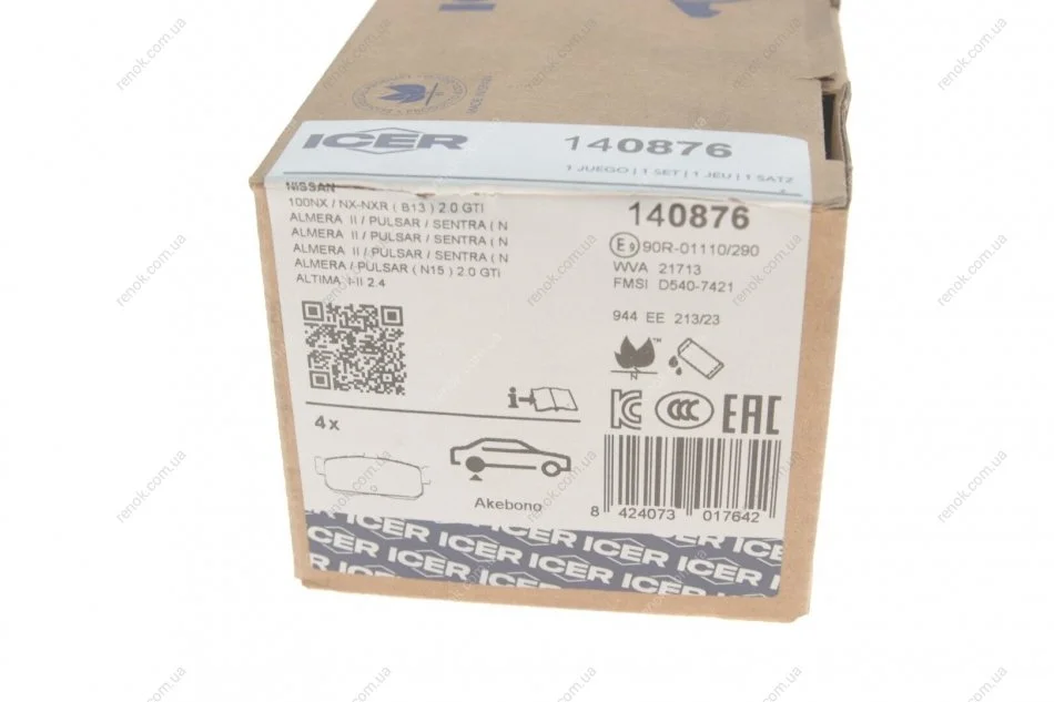 Комплект гальмівних колодок (дискових) ICER 140876 (4406054C91, 440605M490, 4406061J90)