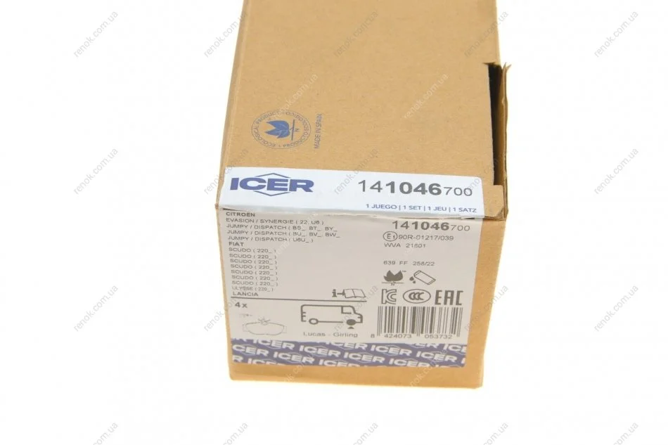 Колодки гальмівні (передні) Citroen Jumpy/Evasion/Fiat Scudo/Peugeot Expert/806 95-06 (+датчики) ICER 141046-700 (425109, 425110, 425453)