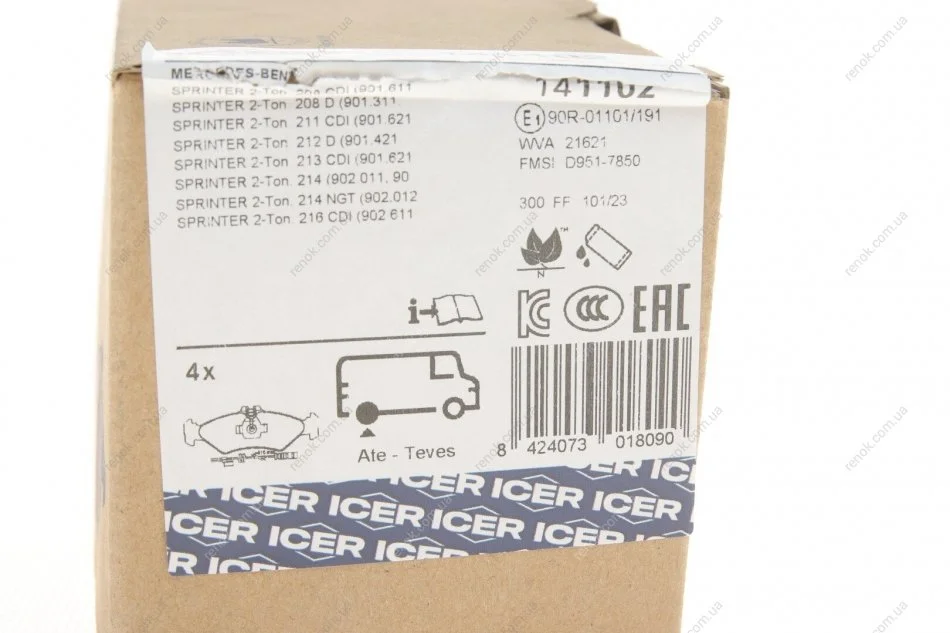 Колодки гальмівні (задні) MB Sprinter (901,902) 208-216 95-06 (мала/+датчики) ICER 141102 (0024203820, 0024205620, 0024206920)