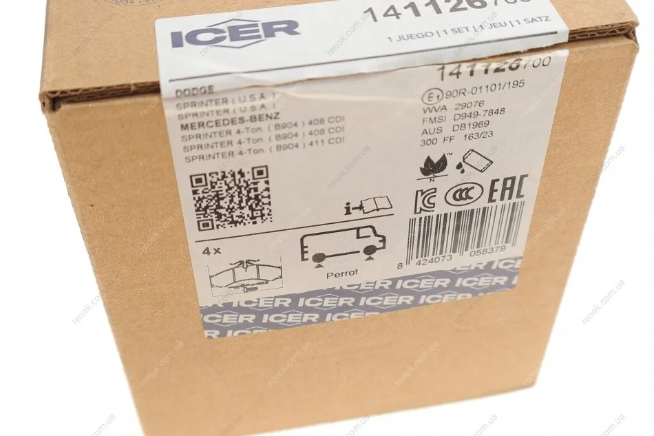 Колодки гальмівні (передні/задні) MB Sprinter (901-905) 208-616 95-/VW LT 96-06 (+датчики) ICER 141126-700 (0004217391, 0004237110, 0024204120)