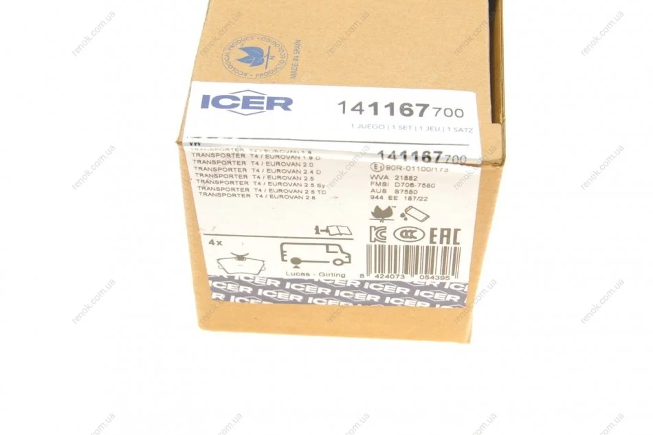 Колодки гальмівні (задні) VW T4 90-03 ICER 141167-700 (32325092, 701615117, 701691451)