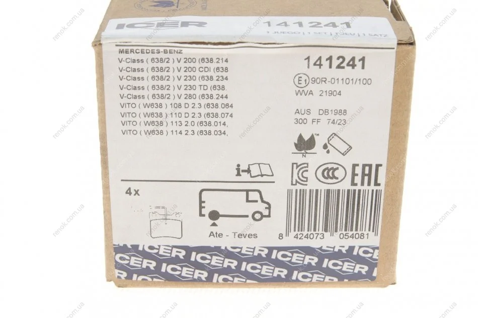 Колодки гальмівні (задні) MB Vito (W638) TDI 96-03 (+датчики) ICER 141241 (0034200020, 0024204820, 6384230110)