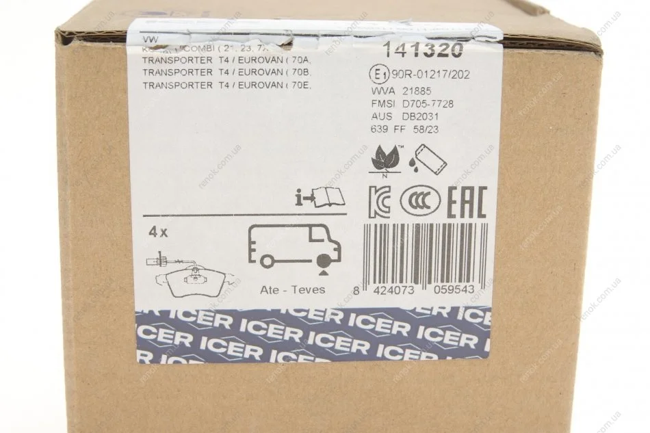 Колодки гальмівні (передні) VW T4 90-03 R15 (+датчик) ICER 141320 (7D0698151F, 7D0698151D, 8660004804)