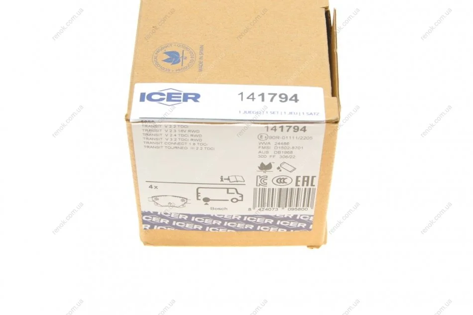 Колодки гальмівні (задні) Ford Transit V347 06-14 (+датчики) ICER 141794 (1433958, 1371454, 1530602)