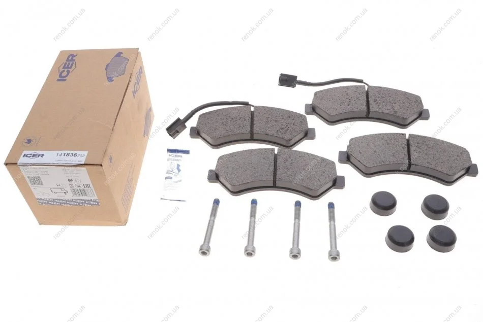 Колодки гальмівні (передні) Citroen Jumper/Fiat Ducato/Peugeot Boxer 06- R16 (з датчиком) ICER 141836-203 (1612433680, 1607878980, 1612433780)