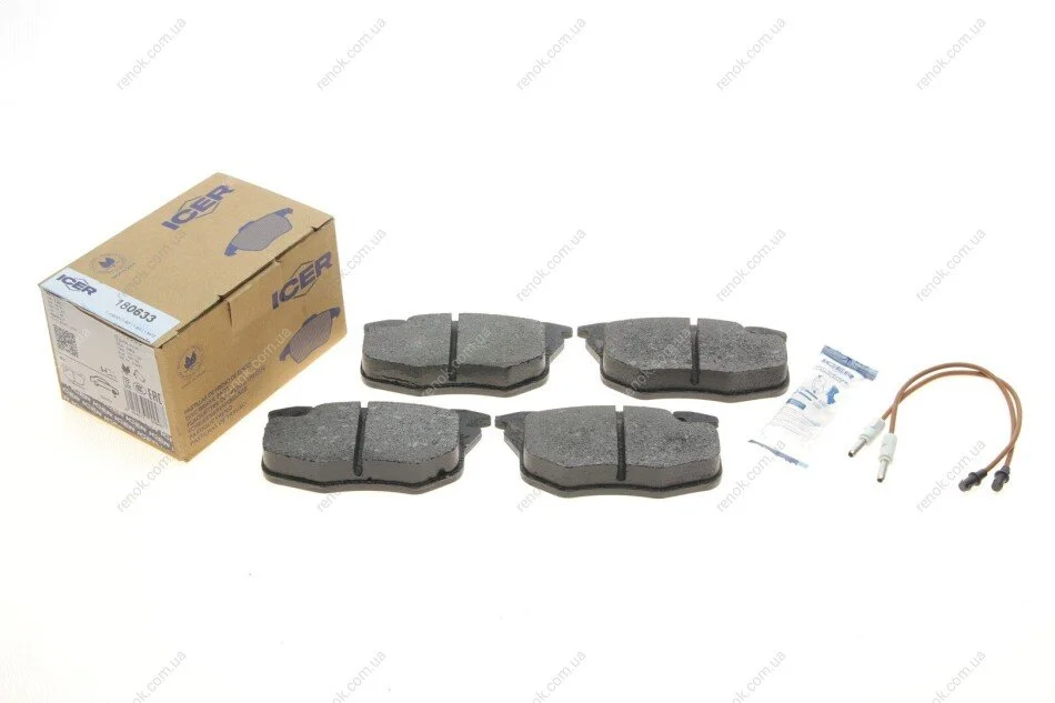 Колодки гальмівні (передні) Peugeot 106 91-04/205/305/309/405 82-98/Renault Clio 91-98 (з датчик.) ICER 180633 (7711130034, 7711130008, 7702163324)