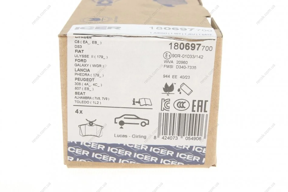 Колодки гальмівні (задні) Citroen C3-C8/Skoda Octavia 01-/Renault Megane 08-/VW Golf 91-14/Polo 96- ICER 180697-700 (425467, 1611456880, 1611837980)