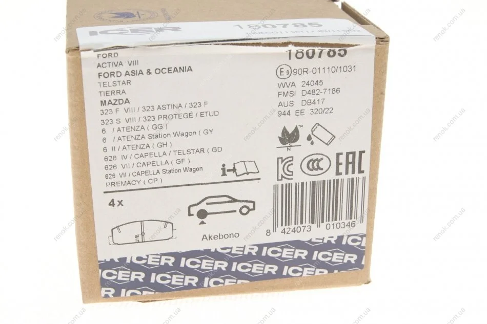 Колодки гальмівні (задні) Mazda 6 02-13/Mazda 323 91-04/626 III/V/RX-7 84-02 ICER 180785 (fb0649280a, fb712628za, fb0649280)