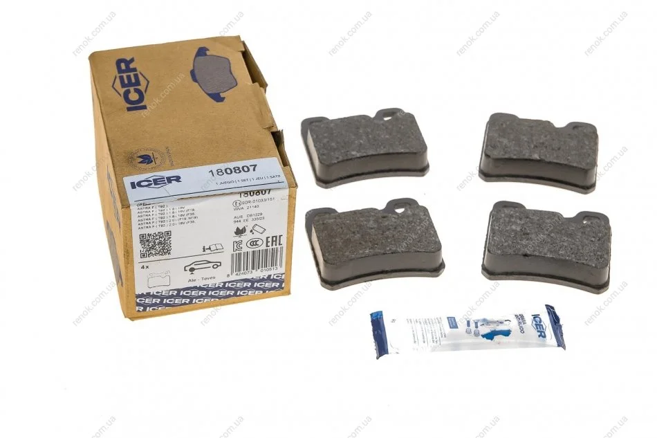 Колодки гальмівні (задні) Opel Astra F 91-01/Kadett E 86-91/Vectra A 88-95 ICER 180807 (1605693, 1605729, 1605877)