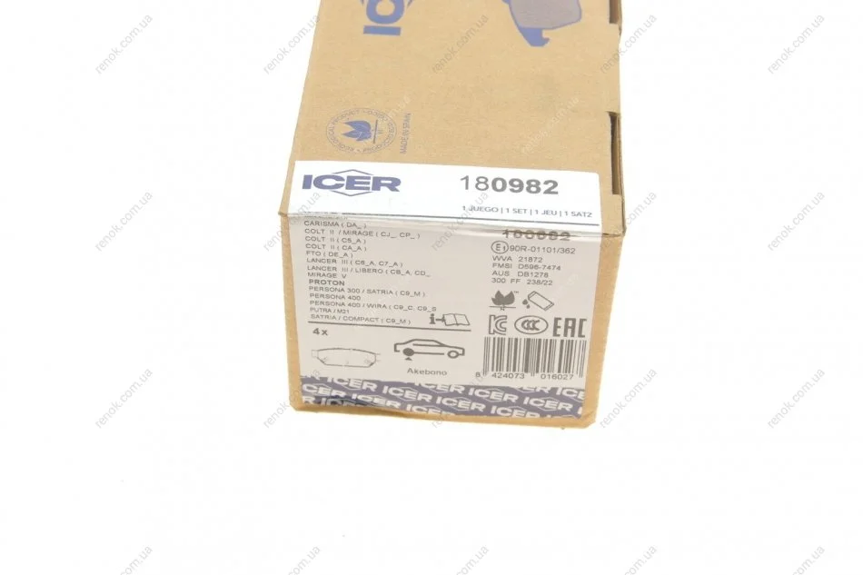 Комплект гальмівних колодок (дискових) ICER 180982 (mb699334, mb699336, mb928314)