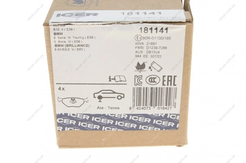 Колодки гальмівні (задні) BMW 5 (E39) 95-04 ICER 181141 (34211163395, 34216761281, 34212157591)