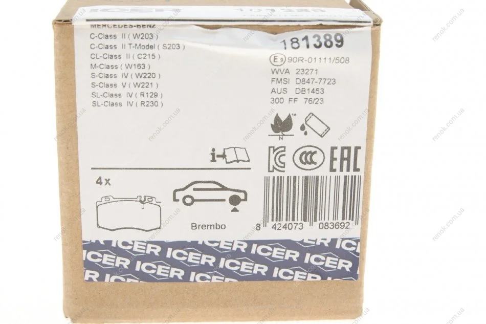 Колодки гальмівні (передні) MB C-class (W203) 02-08/M-class (W163) 98-05/S-class (W220/W221) 98-13 ICER 181389 (006420322095, 0034200520, 0034200820)