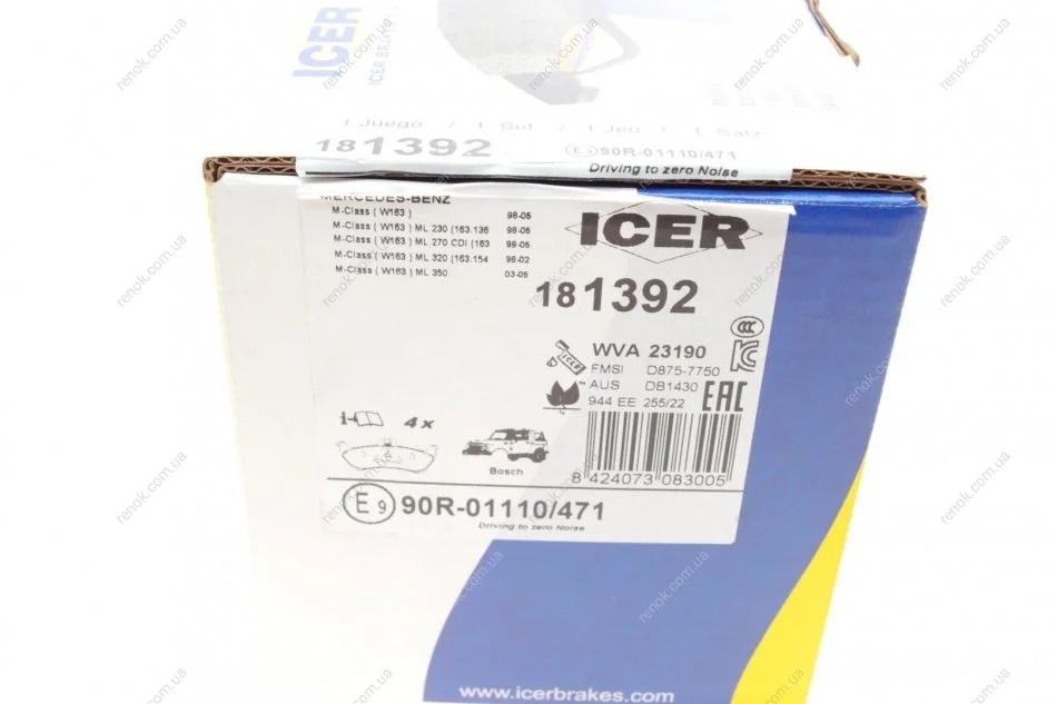 Колодки гальмівні (задні) MB M-class (W163) 98-05 ICER 181392 (1634200520, 1634201420)